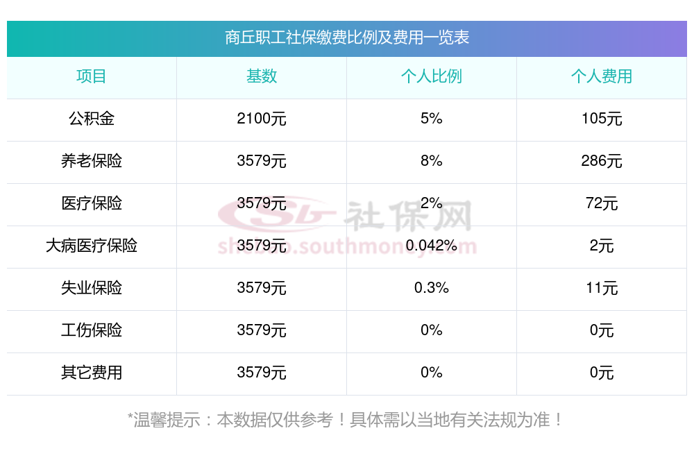 2025年商丘社保缴费多少钱?下表是2024-2025年商丘社保费用明细参考,新社通app-社保缴费查询工具提供的最新数据如下: