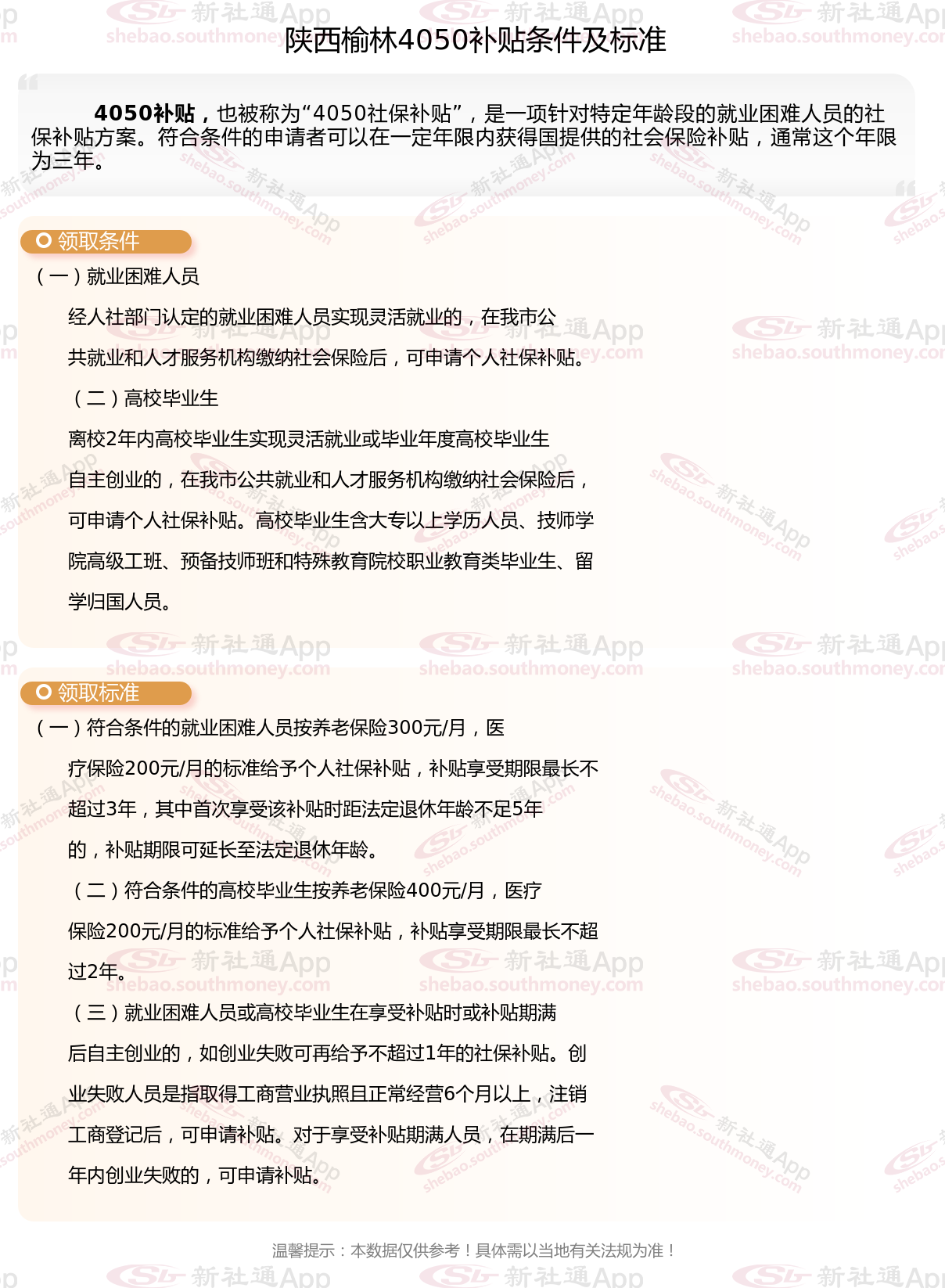 二、2025年陕西榆林4050社保补贴标准及条件,最新如下: