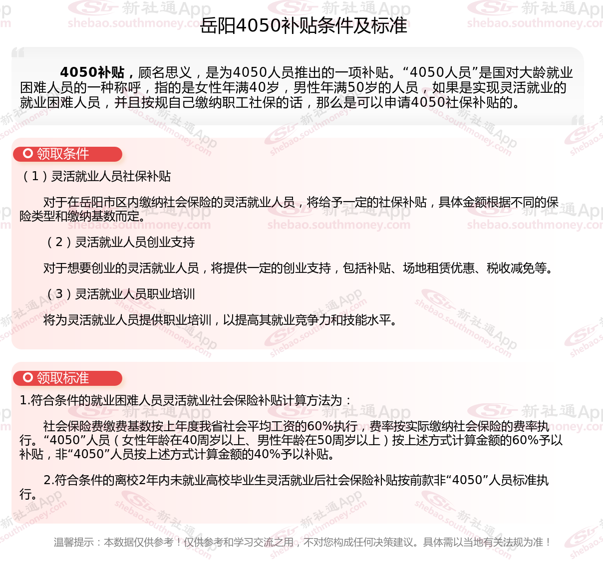 二、2025年岳阳4050社保补贴标准,最新领取条件来了
