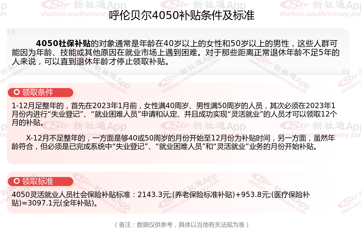 二、2025年呼伦贝尔4050社保补贴标准(呼伦贝尔4050灵活就业人员补贴标准是多少钱?呼伦贝尔2025年4050补贴新规能领多少钱?)