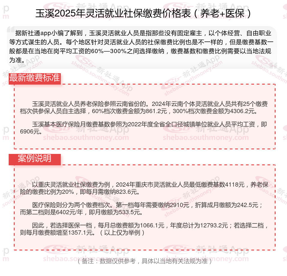 二、玉溪2025年灵活就业社保缴费基数及比例最新消息