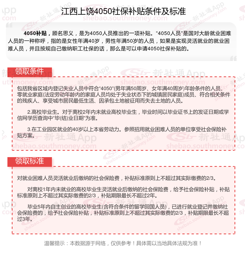 一、2023-2024年江西上饶灵活就业4050社保补贴标准和条件是什么