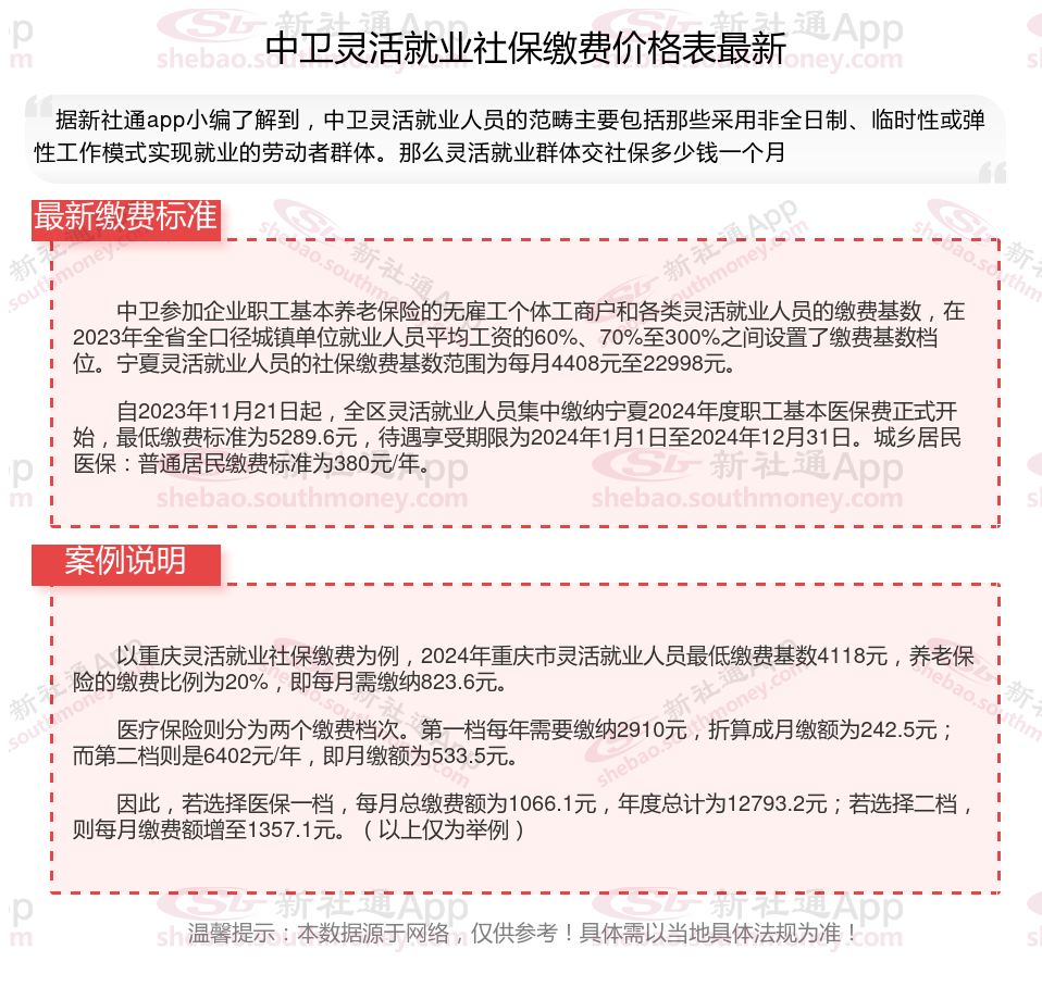 对于灵活就业者来说,社保缴纳是一个非常重要的问题。那么,2025年中卫灵活就业社保怎么交?一个月要交多少呢?领取待遇如何计算的?接下来随新社通APP小编一起了解中卫灵活就业社保缴费具体详情吧。