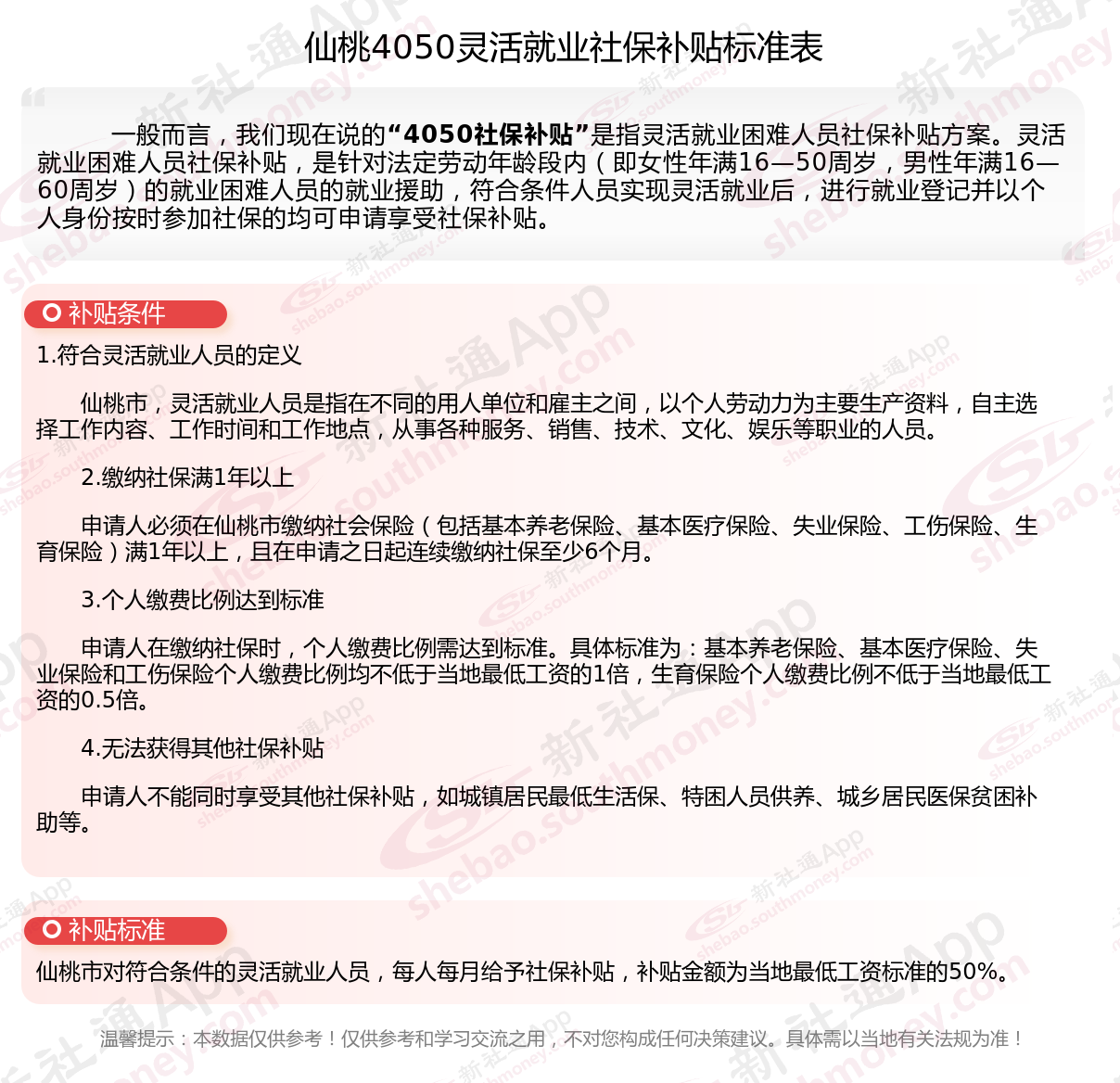 一、仙桃4050社保补贴标准及条件2025年最新消息