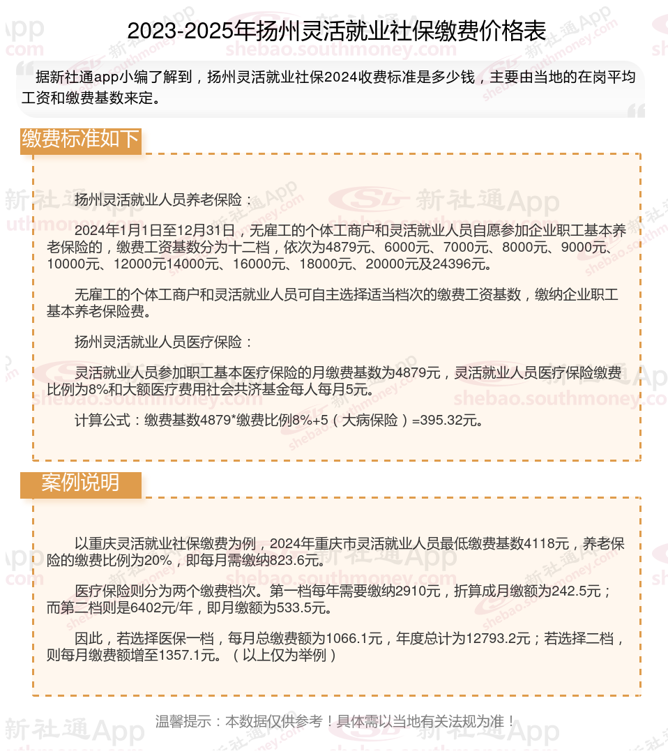 一、2025年扬州灵活就业人员社保养老+医保缴费标准一年多少钱?