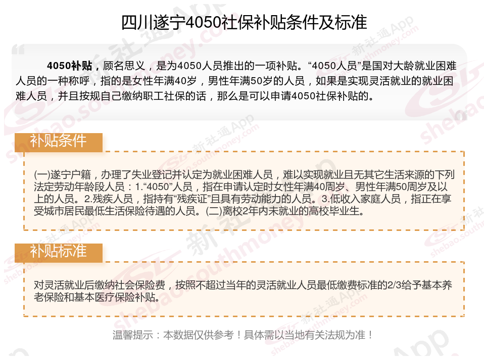 二、2025年四川遂宁4050社保补贴标准及条件,最新如下: