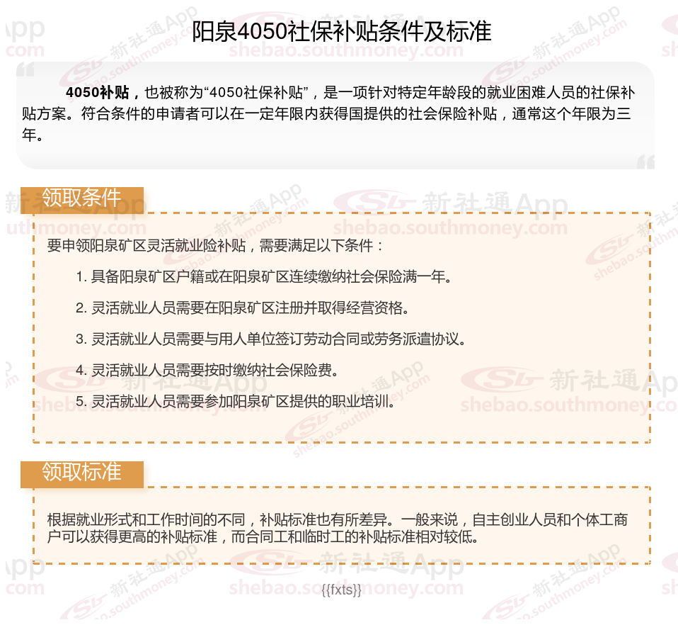 阳泉4050灵活就业社保补贴是什么?今天聊一下4050补贴话题。4050补贴听起来像是一个针对特定年龄人群的社保补贴。比如女性需年满40周岁,男性需年满50周岁(以申请当年12月31日为截止日期)。那么阳泉4050灵活就业社保补贴标准是多少钱?阳泉4050社保补贴可以领取多少?接下来随新社通APP小编了解一下阳泉4050灵活就业社保补贴的最新资讯。