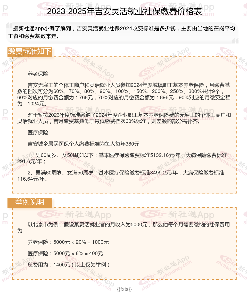 2025年吉安灵活就业缴费标准个人交多少呢, 个人是可以自己交社保的吗?根据新社通app-社保缴费查询工具提供的最新数据如下: