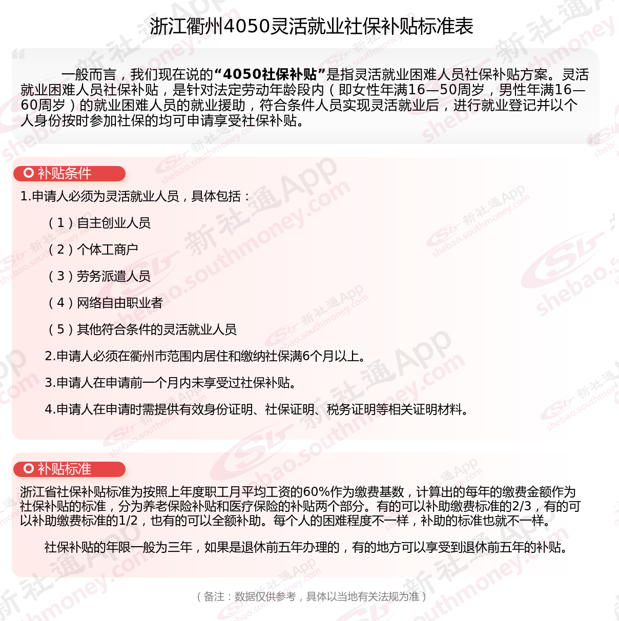 一、浙江衢州4050社保补贴标准及条件2025年最新消息