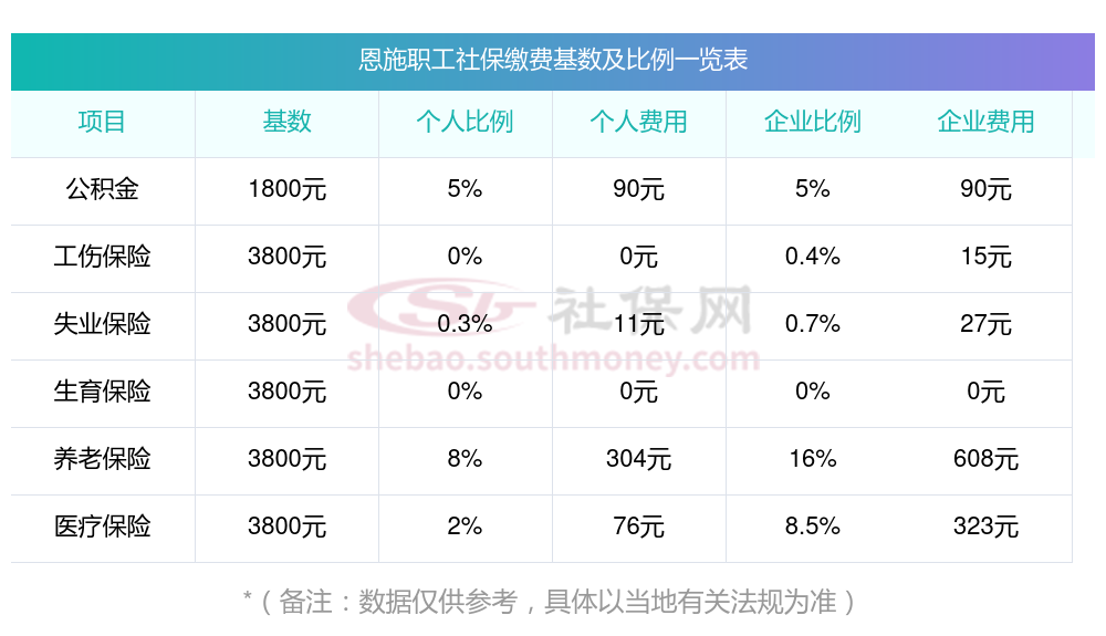 2025年恩施社保缴费价格表最新消息?恩施社保交多少钱一个月?下表是2024-2025年恩施社保费用明细参考,新社通app-社保缴费查询工具提供的最新数据如下: