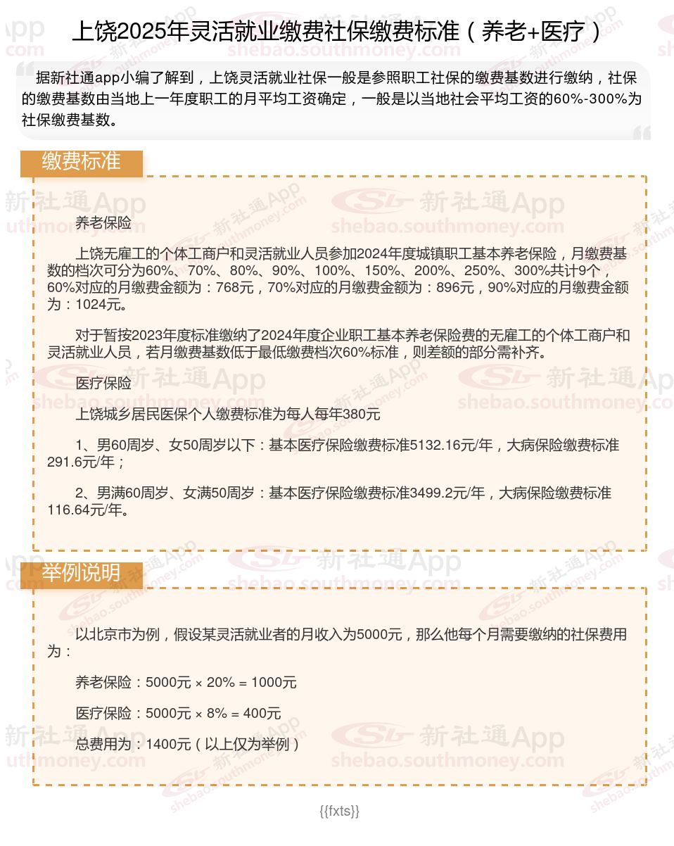 据新社通app数据显示,上饶灵活就业人员养老保险缴费基数2024-2025年最新标准如下: