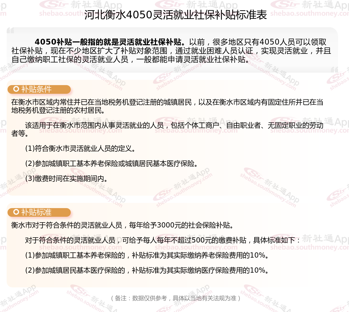 二、河北衡水4050社保补贴标准及条件2025年,最新如下
