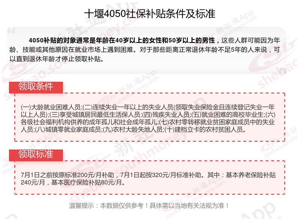一、2023-2024年十堰4050社保补贴标准及条件,最新如下
