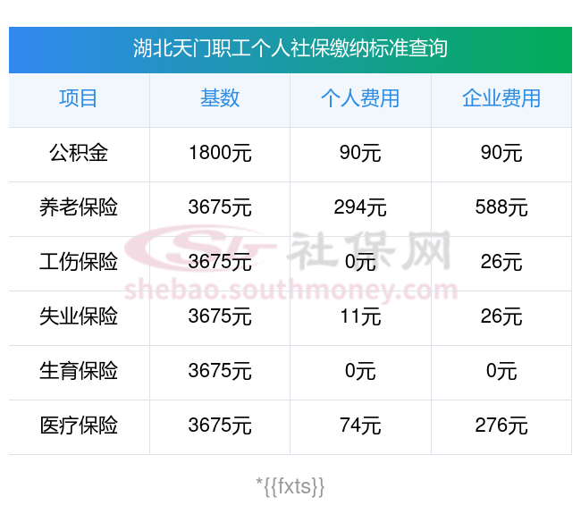 湖北天门五险一金交多少钱一个月?下面和社保网一起来看看2024-2025年湖北天门最低标准社保费用明细参考,新社通app-社保缴费查询工具提供的最新数据如下: