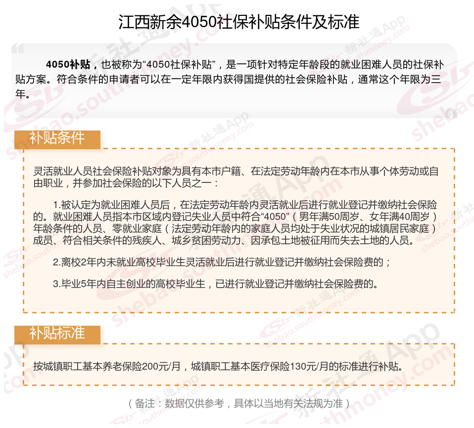 “4050人员”是国对大龄就业困难人员的一种称呼,指的是女性年满40岁,男性年满50岁的人员,那么江西新余4050灵活就业社保补贴标准是多少钱?江西新余4050社保补贴条件是什么?接下来随新社通APP小编了解一下最新资讯。
