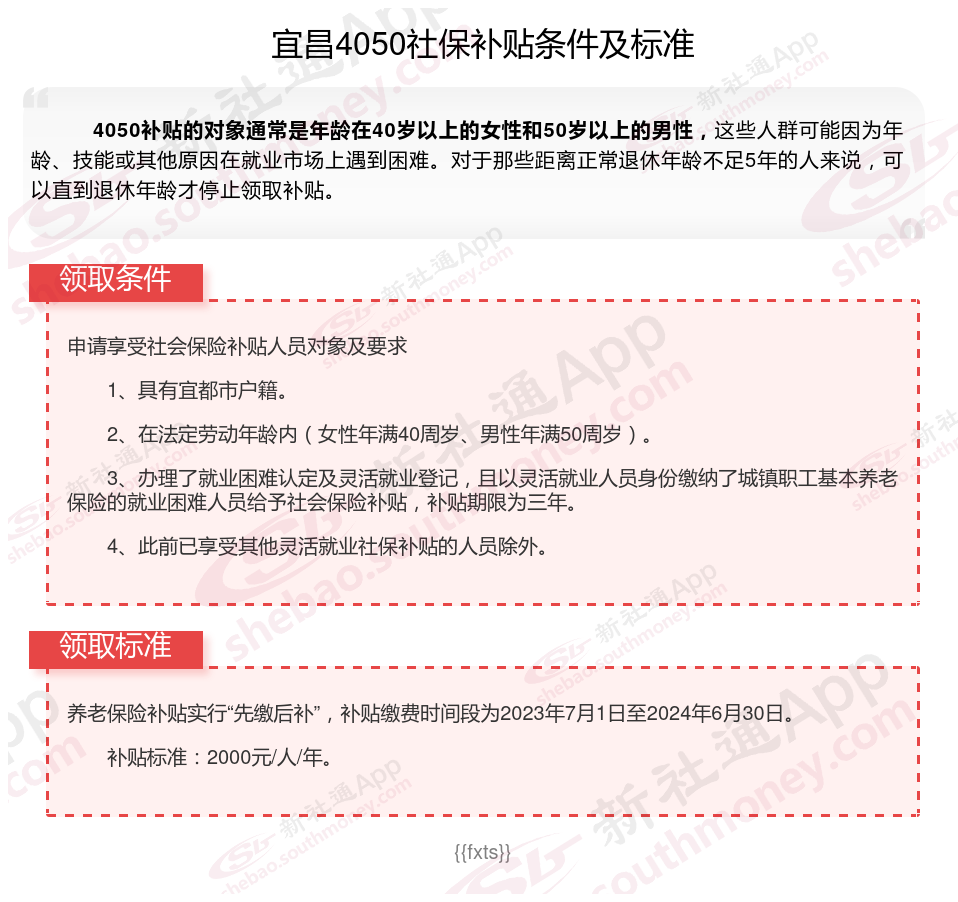 一、宜昌4050社保补贴标准及条件2025年最新消息