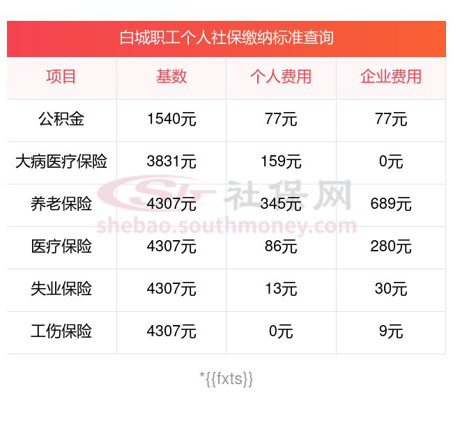 白城社保缴纳情况是怎样的?一起和社保网app一起来看看下面的明细表: