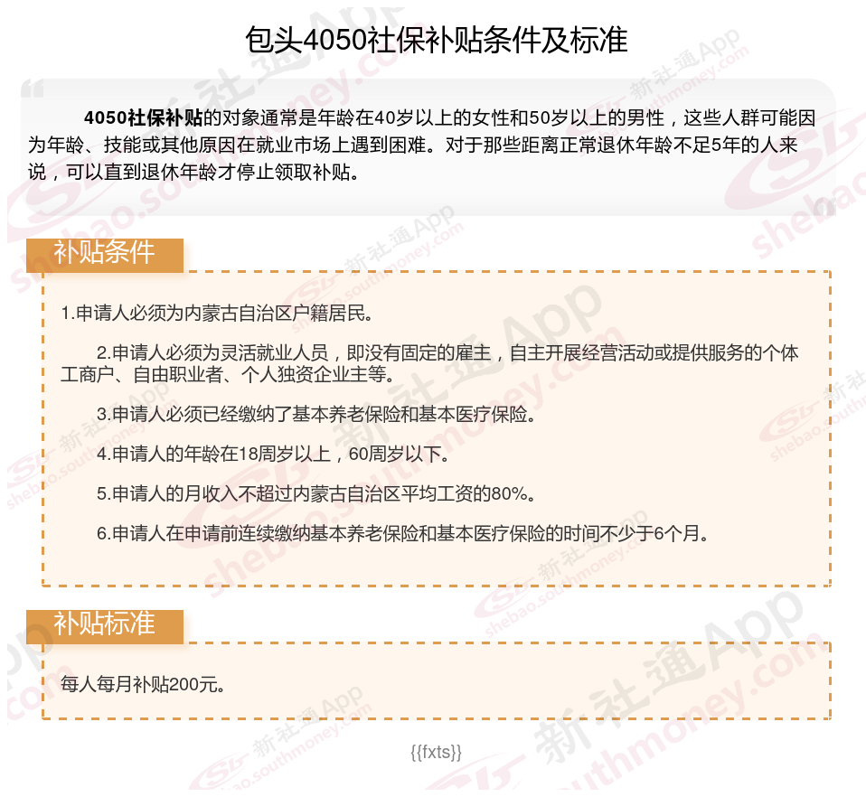 一、包头灵活就业4050社保补贴标准和条件是什么?