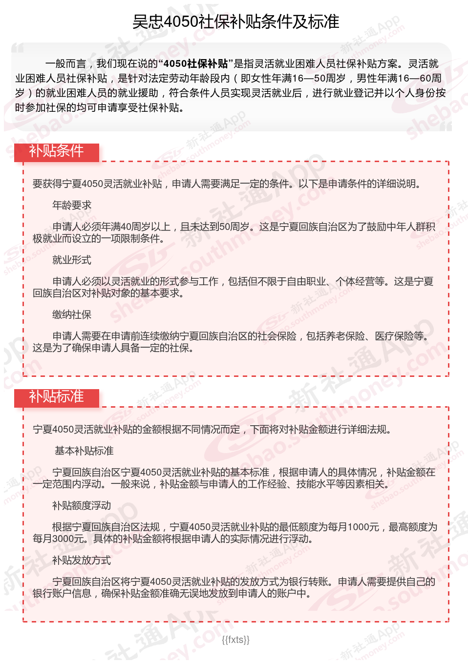一、吴忠灵活就业人员4050补贴最新标准2025年,吴忠4050灵活就业人员养老补贴一年可以有多少钱?