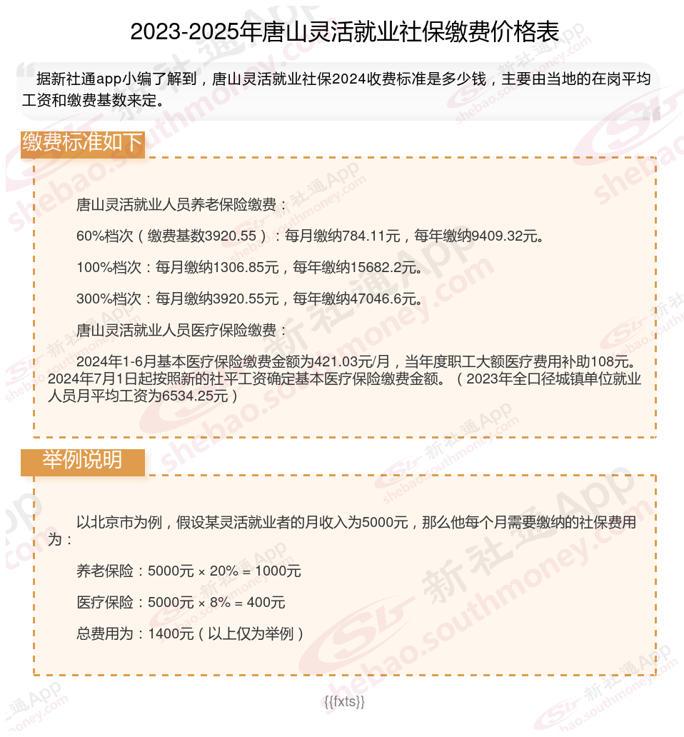 唐山灵活就业社保缴费标准,唐山社保缴费多少钱?下表是2024-2025年唐山社保费用明细参考,根据新社通app-社保缴费查询工具提供的最新数据如下: