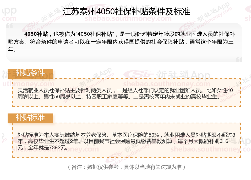 一、2025年江苏泰州灵活就业4050社保补贴标准最新是多少?