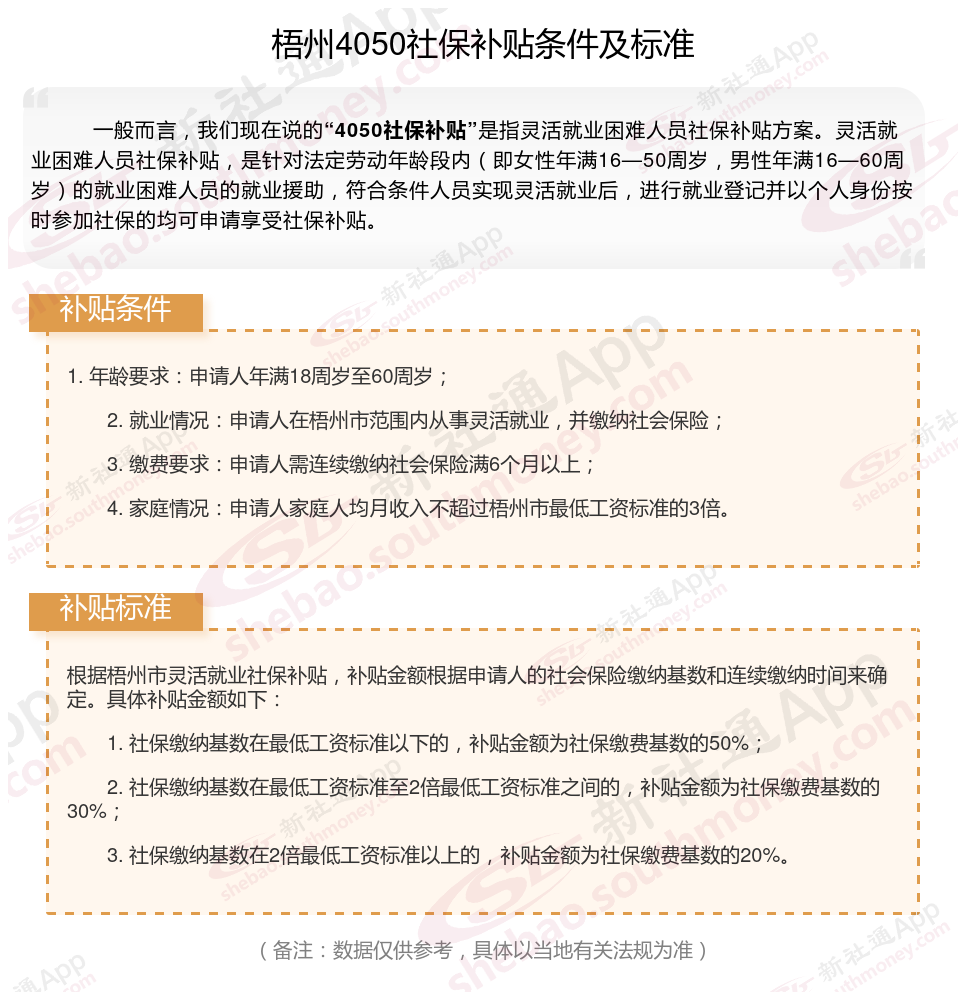 二、梧州4050社保补贴标准及条件2025年,最新如下
