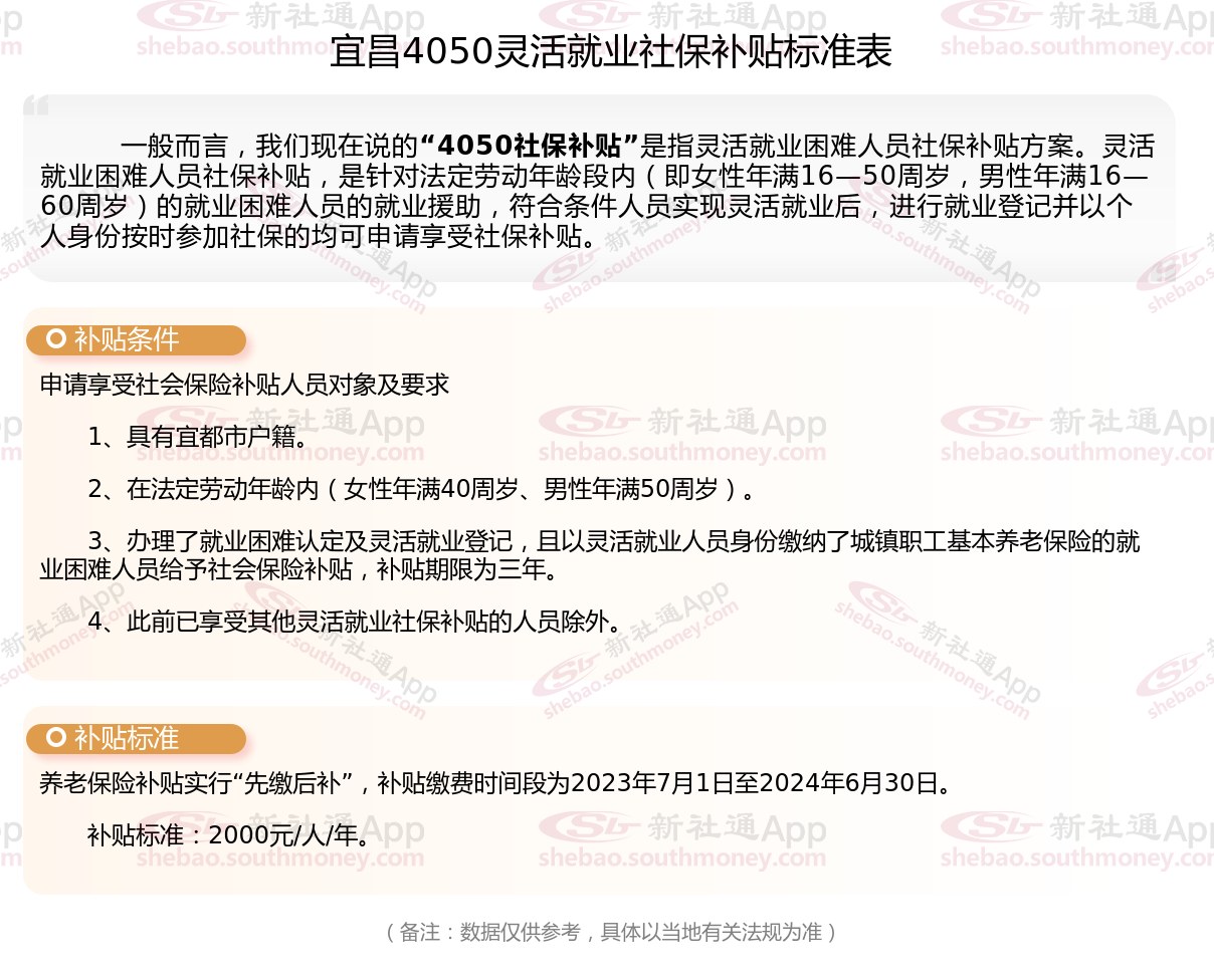 一、2025年宜昌4050社保补贴标准及条件是多少?
