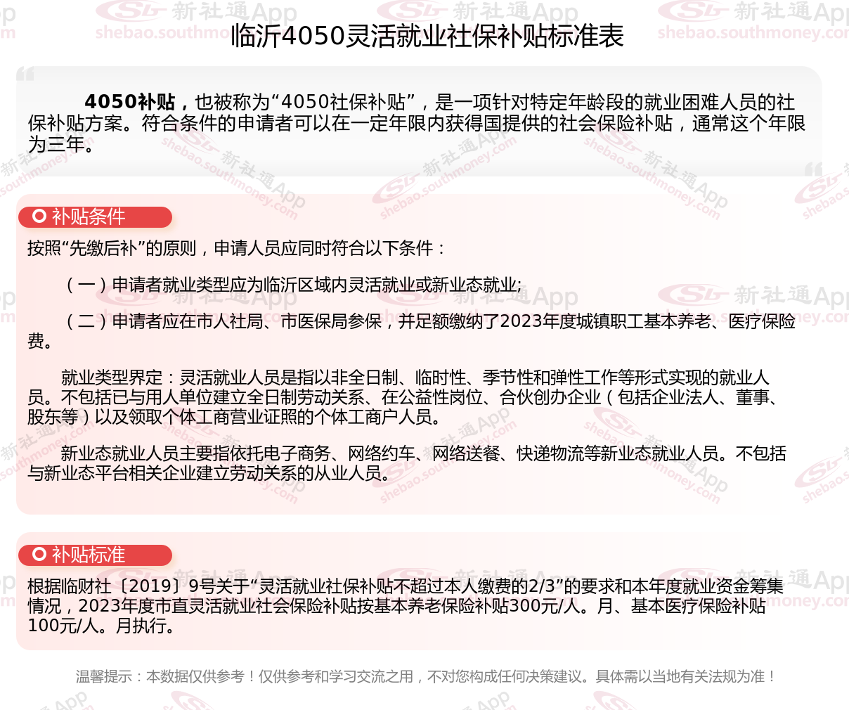 二、临沂4050社保补贴标准及条件2025年,最新如下