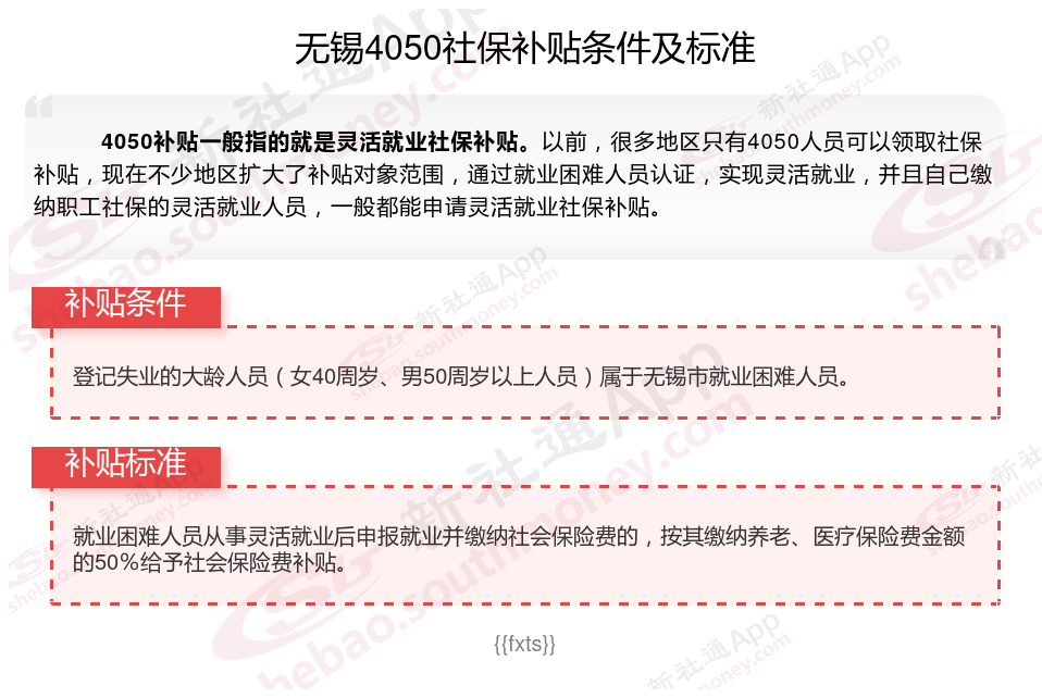 一、2023-2024年无锡4050社保补贴标准及条件是多少?