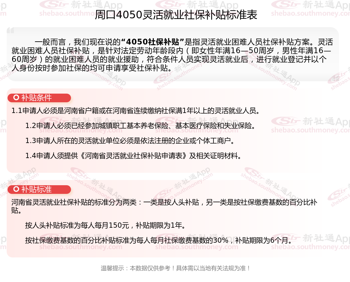 一、2025年周口灵活就业4050社保补贴标准最新是多少?