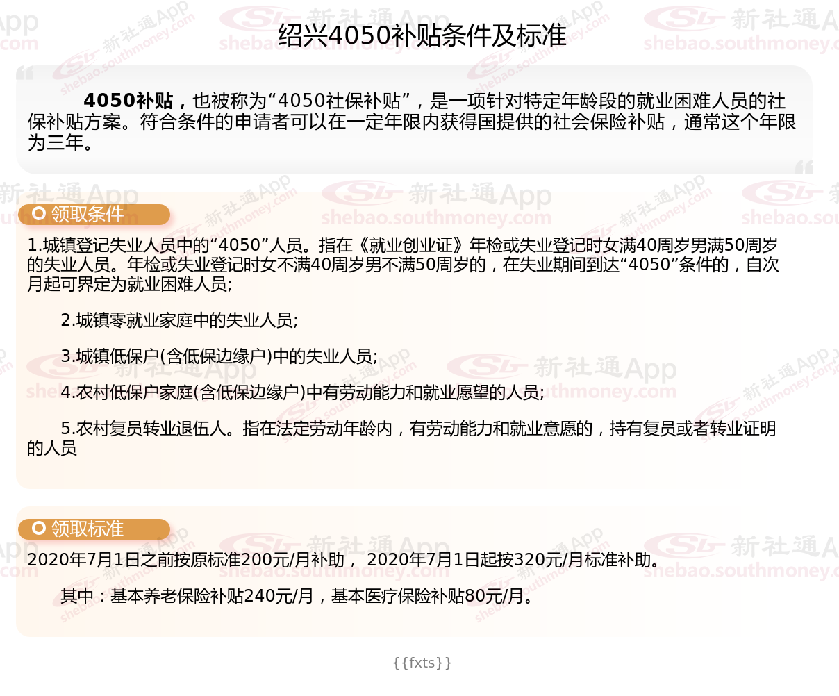 二、2025年绍兴4050社保补贴标准及条件,最新如下:
