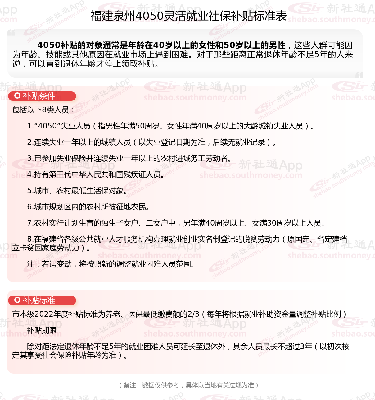 一、2023-2024年福建泉州灵活就业4050社保补贴标准和条件是什么