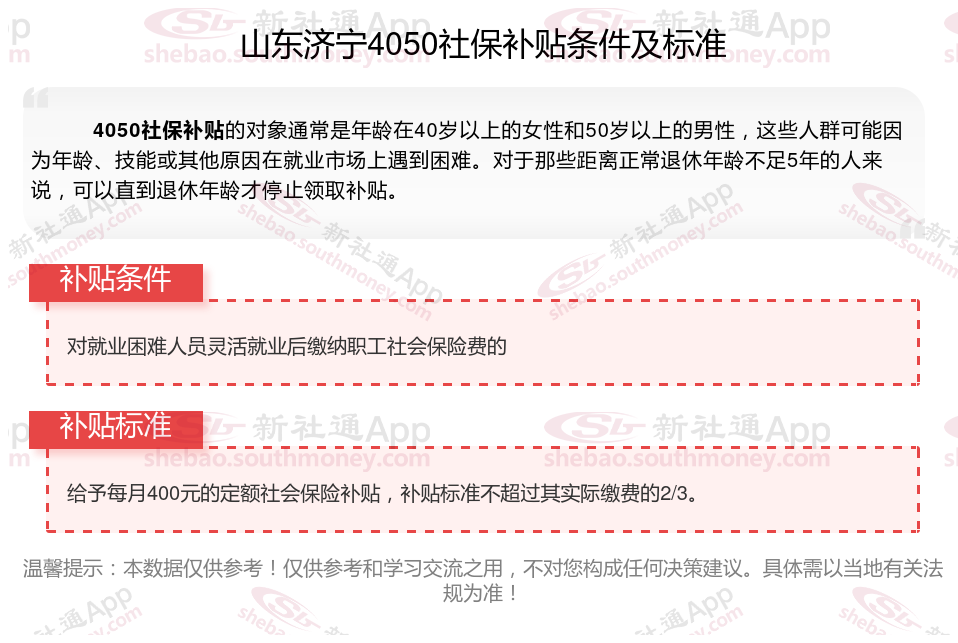 一、2025年山东济宁4050社保补贴标准,最新领取条件来了