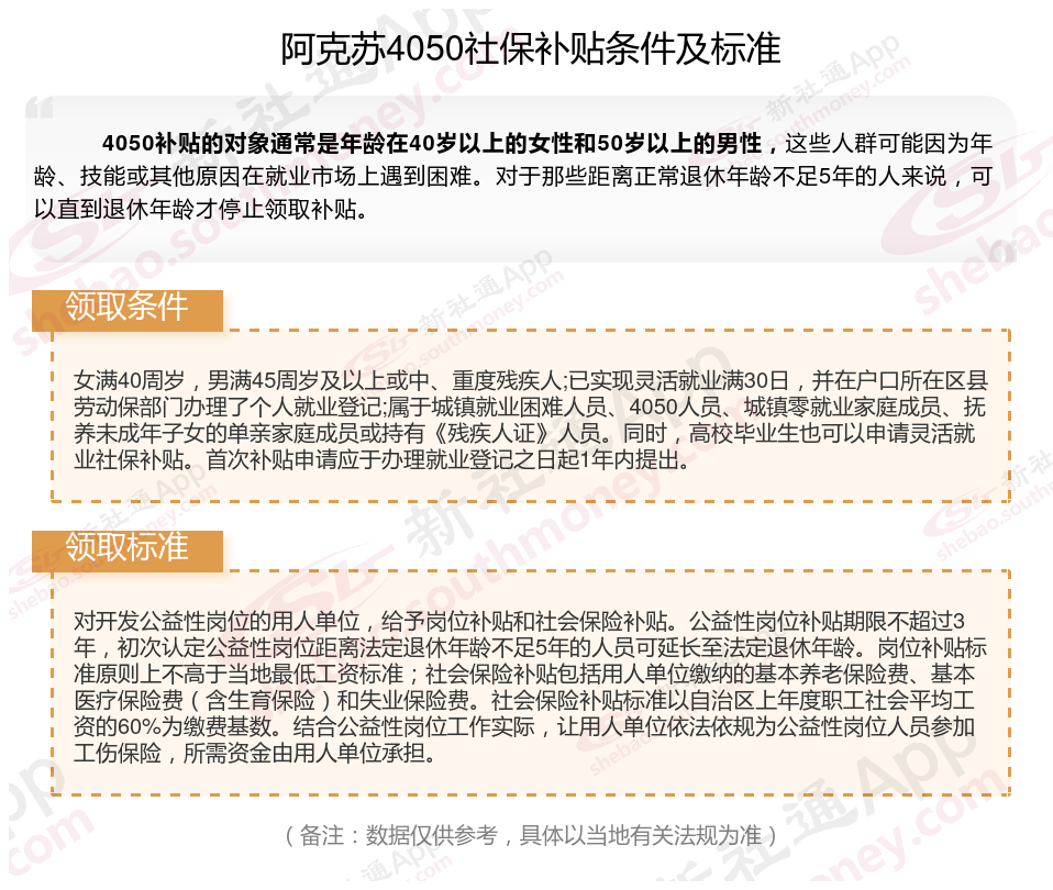 二、阿克苏4050社保补贴标准及条件2025年最新消息