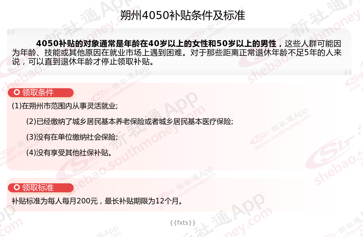4050补贴主要是针对大龄就业困难人群的社保补贴,申请条件包括年龄、就业困难、灵活就业并自费缴纳社保,需要持有失业登记证,不同地区可能有细微差别,比如农村户口的限制。那么朔州4050灵活就业社保补贴标准是多少钱?朔州4050社保补贴条件是什么?接下来随新社通APP小编了解一下最新资讯。