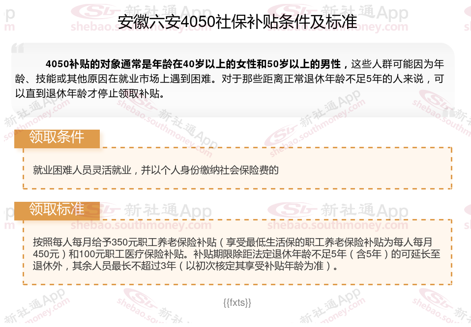 二、2025年安徽六安4050社保补贴标准,最新领取条件来了