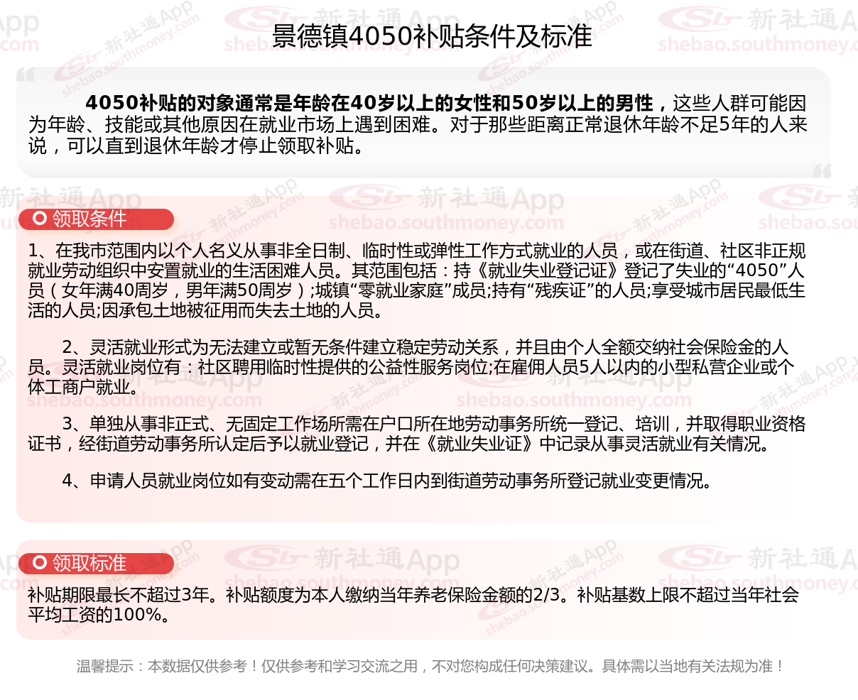 二、景德镇4050社保补贴标准及条件2025年,最新如下