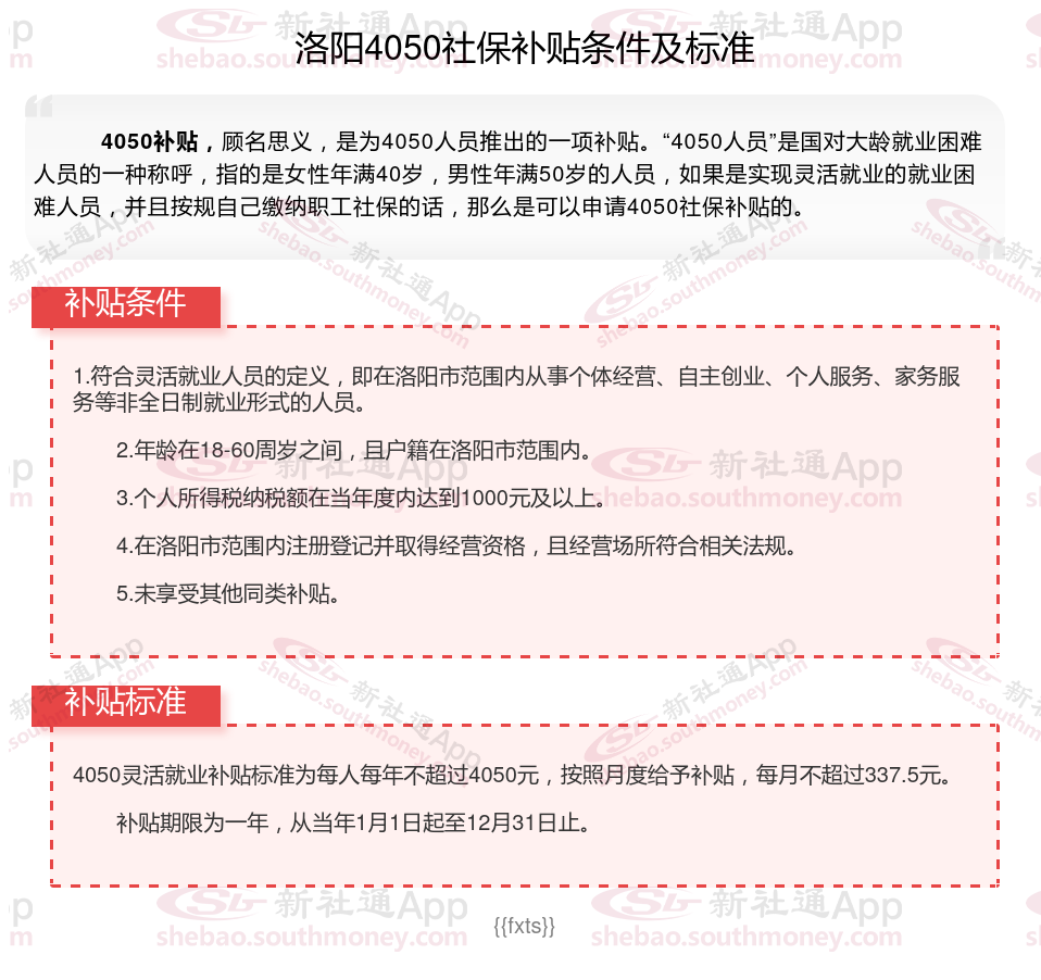 一、2023-2024年洛阳4050社保补贴标准及条件,最新如下