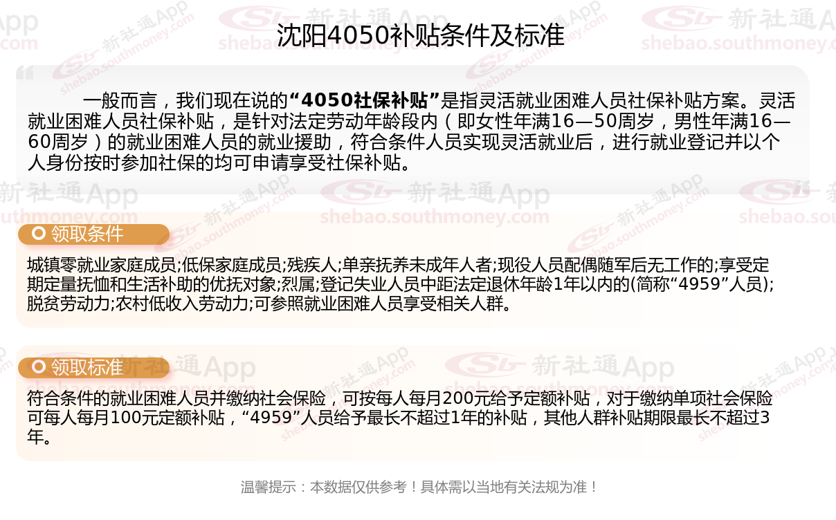 一、2025年沈阳4050社保补贴标准是怎么样的,附领取条件