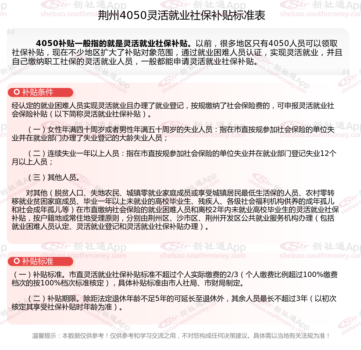 一、2023-2024年荆州4050社保补贴标准及条件,最新如下