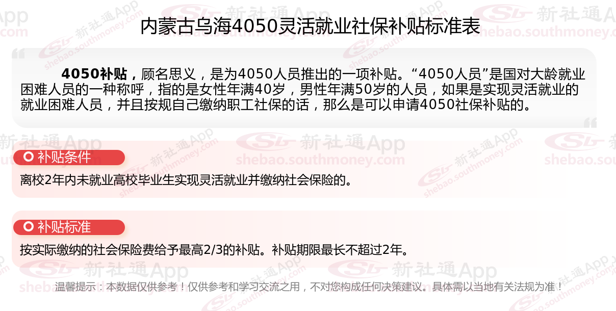 二、内蒙古乌海4050社保补贴新规2025年最新标准,2025年内蒙古乌海4050社保补贴条件是什么?