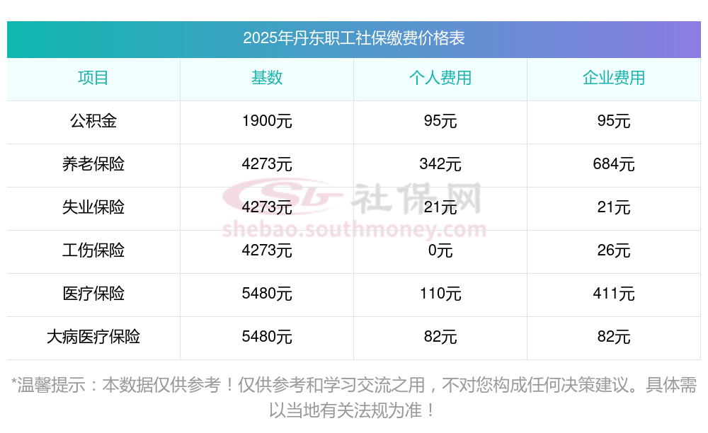 五险一金扣多少?丹东五险一金扣多少钱?下表是2024-2025年丹东社保费用明细参考,新社通app-社保缴费查询工具提供的最新数据如下: