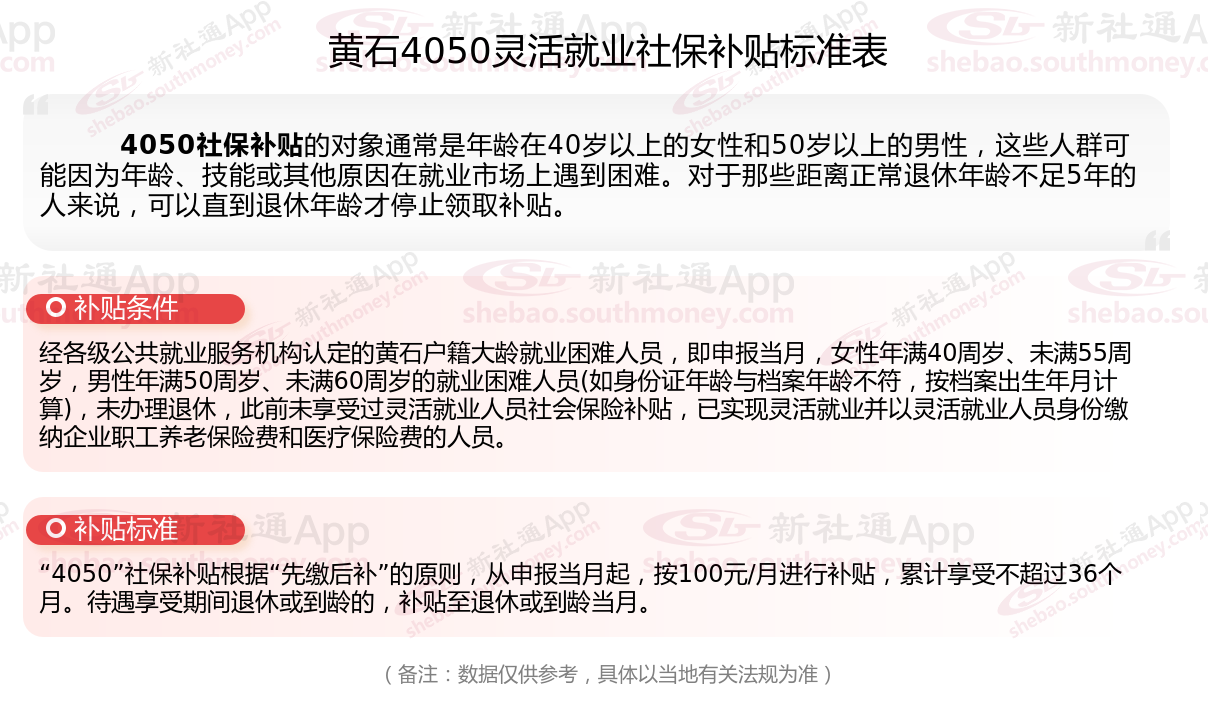 二、黄石4050社保补贴多少钱一个月?黄石4050社保补贴2025年最新标准是多少?