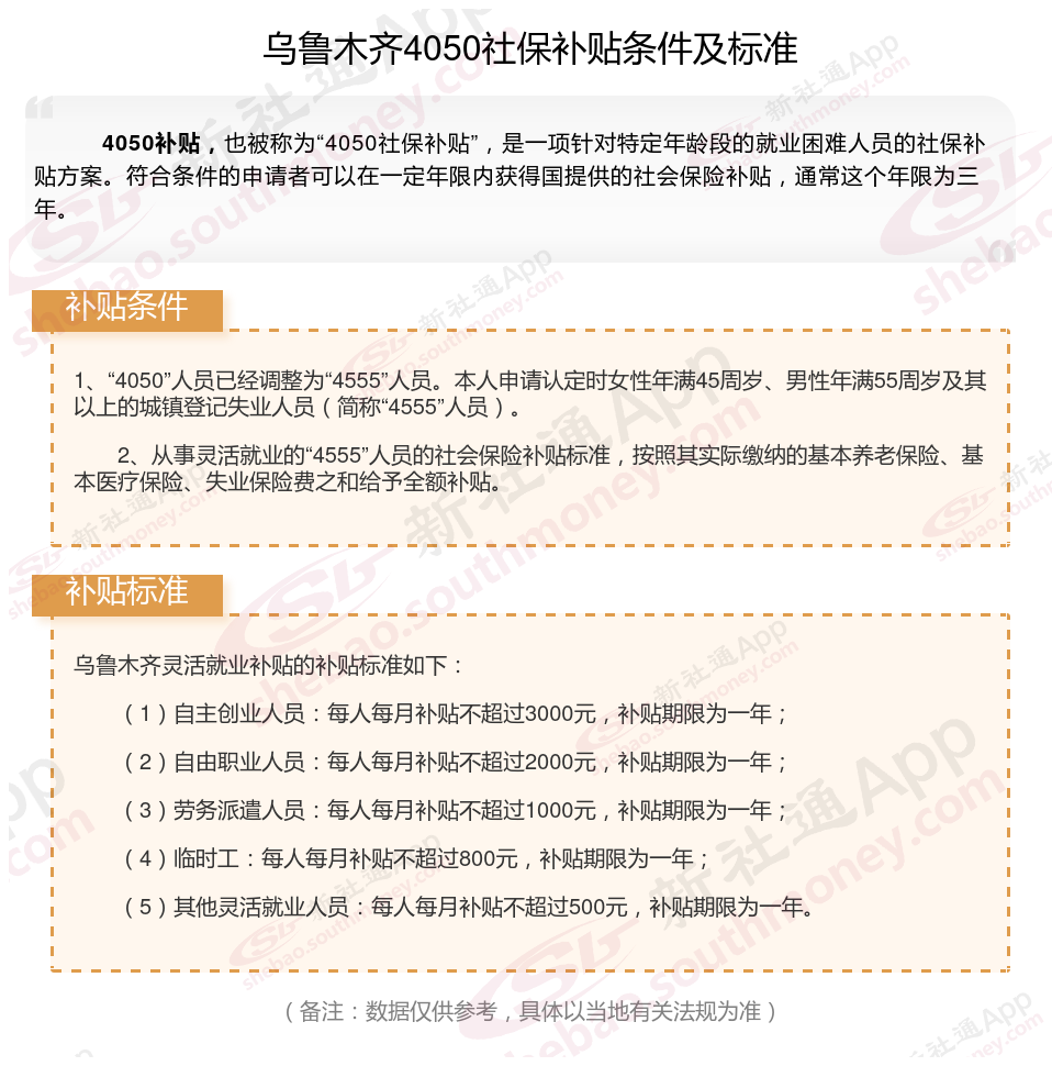 一、2023-2024年乌鲁木齐4050社保补贴标准及条件是多少?