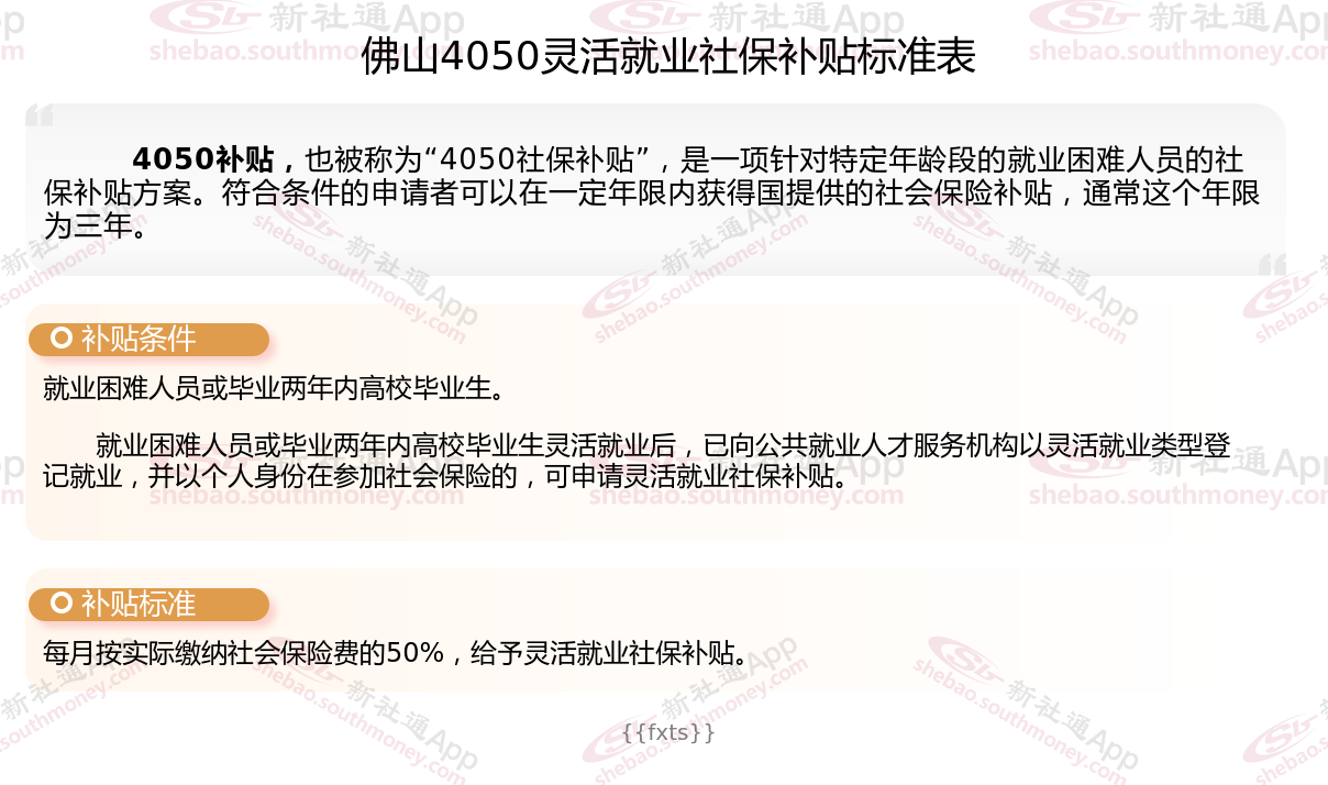 二、2025年佛山4050社保补贴标准及条件,最新如下: