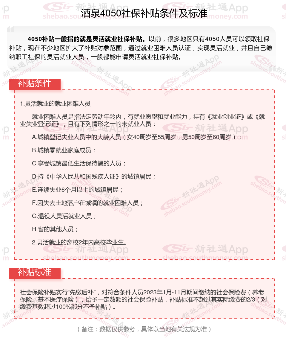 一、酒泉灵活就业人员4050补贴最新标准2025年,酒泉4050灵活就业人员养老补贴一年可以有多少钱?