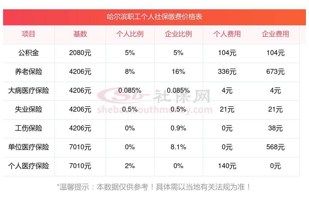 哈尔滨社保单位与个人的缴存比例根据不同的保险种类有所不同。以下是各项社会保险的缴存比例: