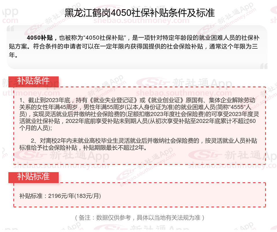 一、2025年黑龙江鹤岗4050社保补贴标准及条件是多少?