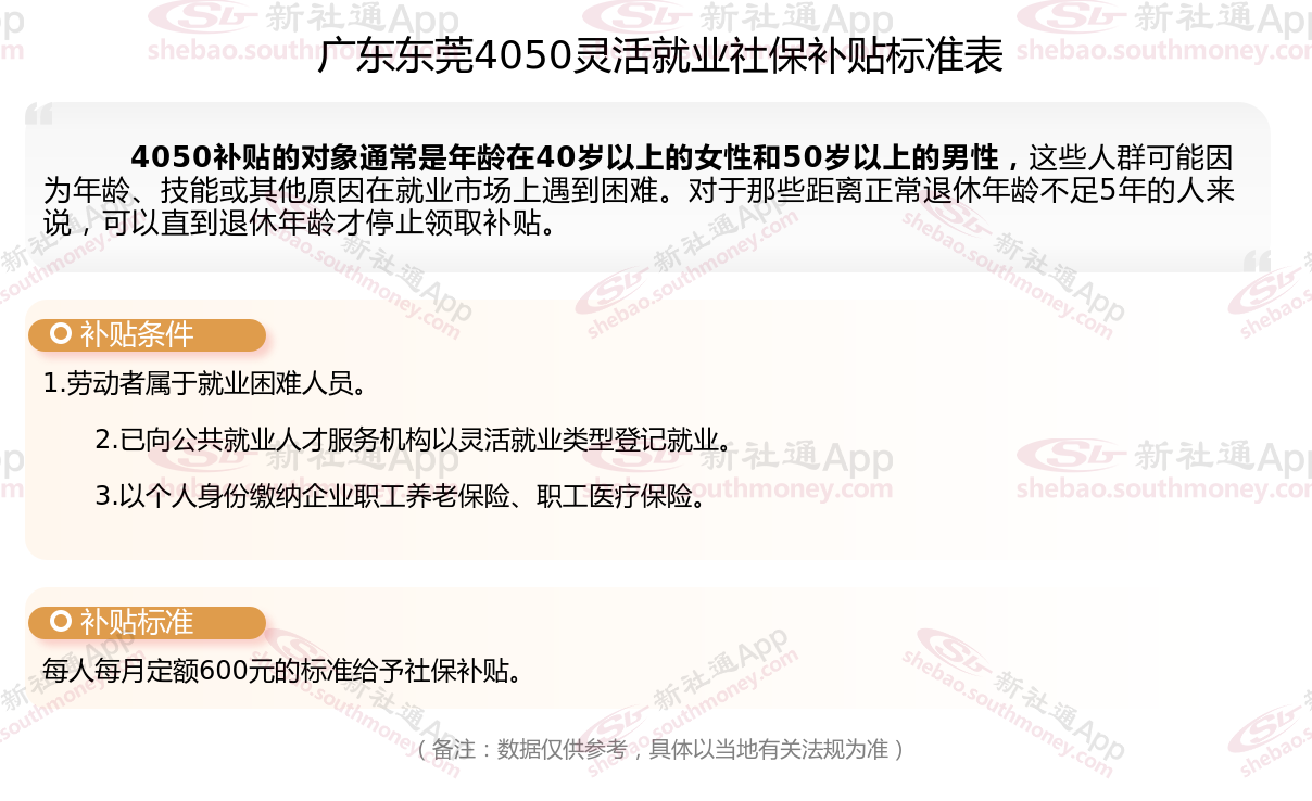 一、2025年广东东莞4050社保补贴标准,最新领取条件来了