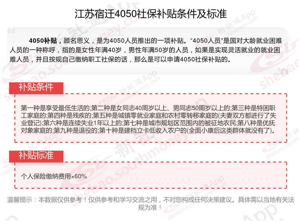 二、江苏宿迁4050社保补贴标准及条件(2025年最新)